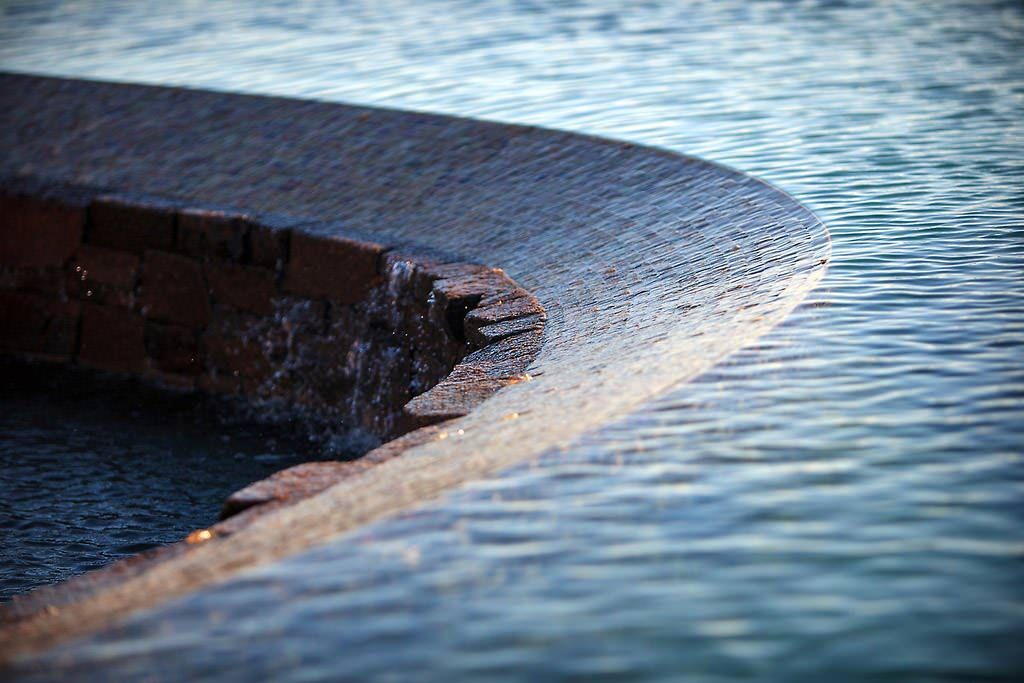 The project design features include a 65’ x 38’ main pool which spills over an infinity edge feature into a secondary wading pool. A large boulder water feature with multiple stream beds leading into the pool. Other features include 50 specimen live oak trees and a zero edge feature on the wading pool.
