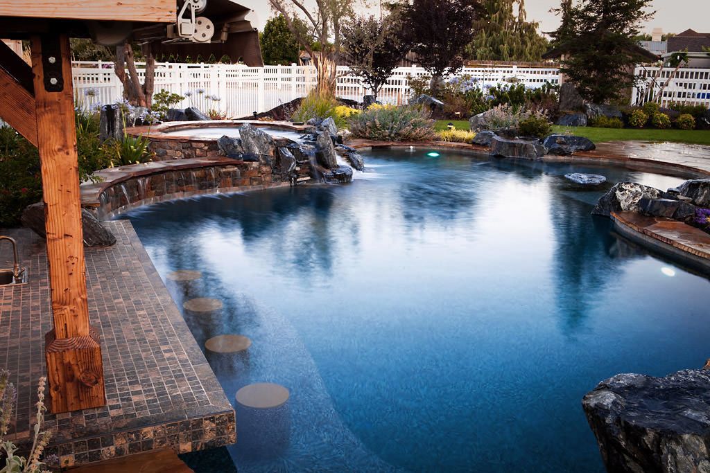 You name it, this project has it! Specialized engineering was needed to build this spectacular 45' infinity edge design, which offers the owners unobstructed sweeping views of the Mt. Diablo foothills from inside and out of the pool.
